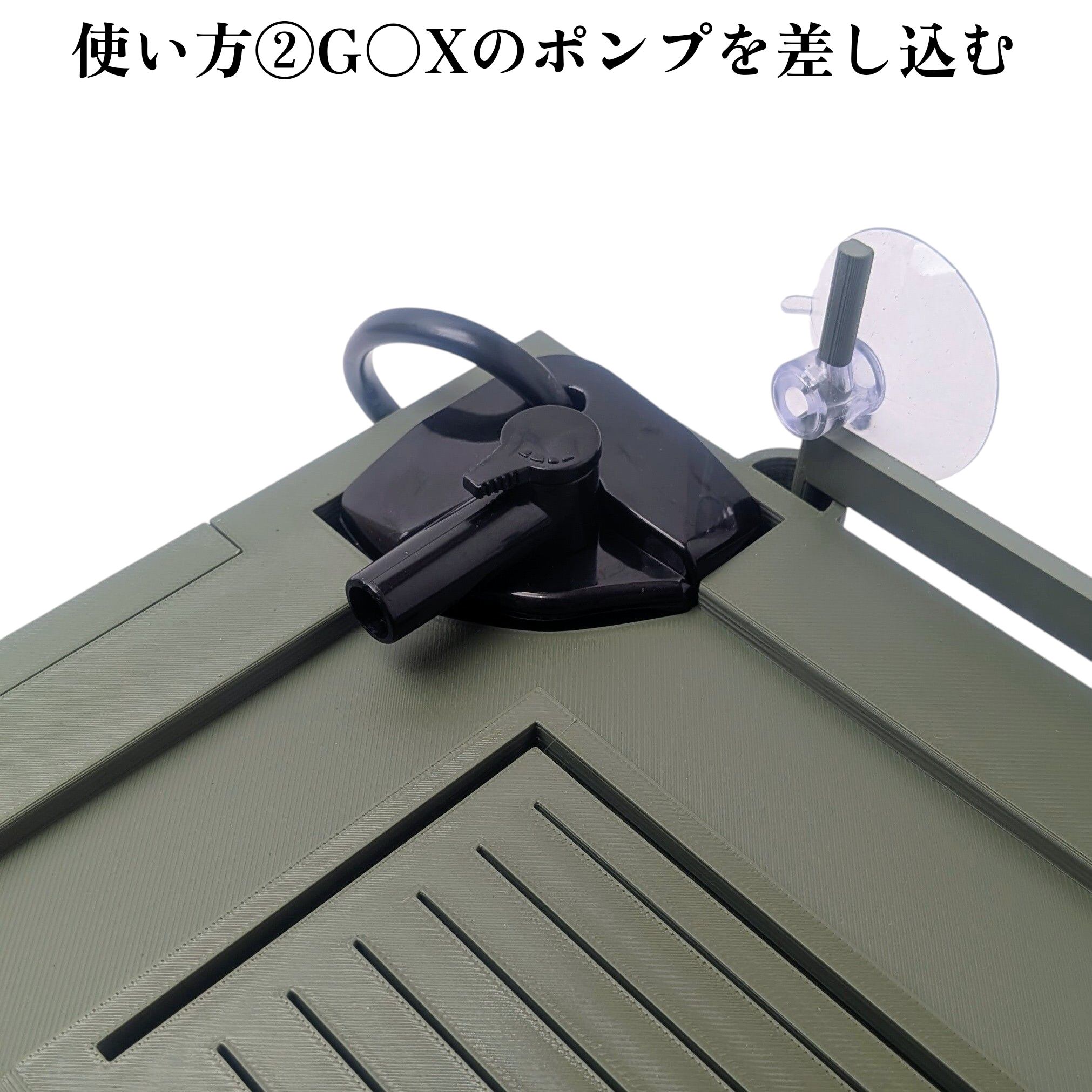 ③蓋をしてG〇Xのカメ元気フィルター(コーナーパワーフィルター)のポンプ部分を、ポンプ室に差し込む