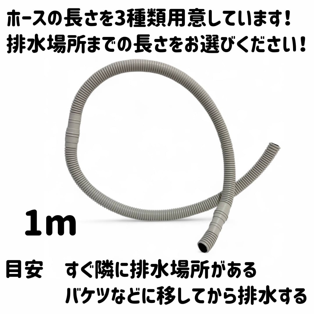 ・ポンプ排水部と排水ホース末尾には塩ビパイプを接続可能