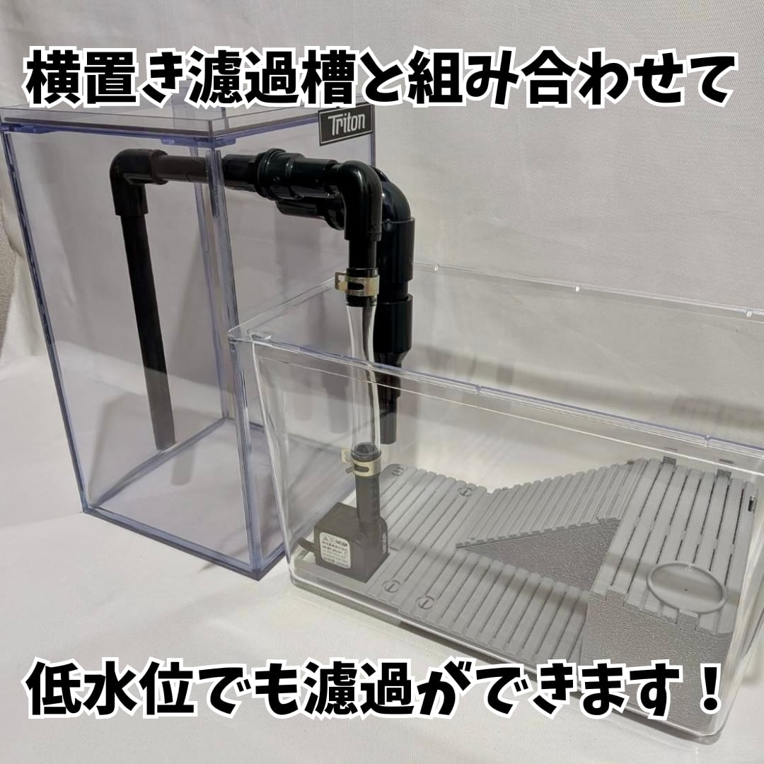 横置き濾過槽とセットで使うことで、水量の少ないプラケ飼育でも濾過ができます!